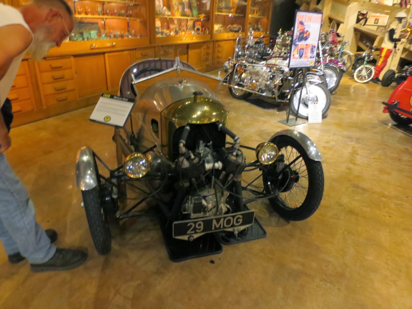 A Corbin Sparrow electric car was in the hall of fame room for some reason.